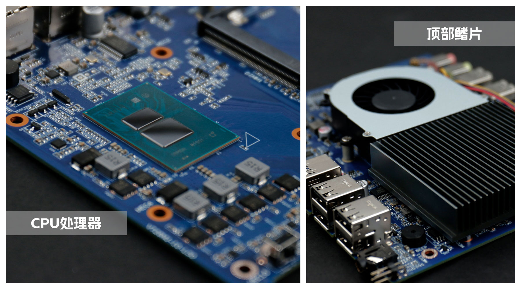主板是非凡桌面云终端Y-BOX S2的核心部件,拆开主板上的顶部铝制鳍片与风扇,整体配色是常规的深蓝色,由非凡自有工厂倾力打造,CPU采用板贴的形式,表面涂了一层散热膏用于导热,可以支持intel新一代Alder Lake-N平台处理器,为英特尔首款基于 7nm 的产品线,最高可支持到8核,采用大小核(E核、P核)的全新架构,在同等功耗下有更优异的性能表现。