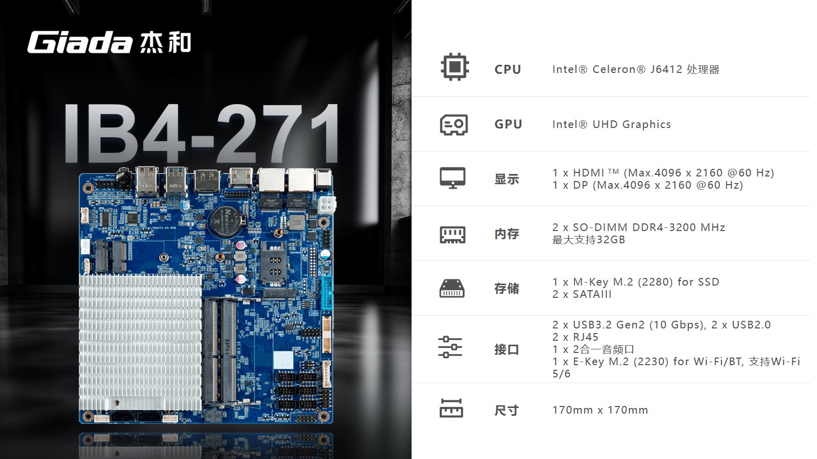 非凡IB4-271搭载的是Intel® Celeron® J6412处理器,Elkhart Lake平台在单线程性能上提升了1.7倍,在多线程性能方面提升了1.5倍,具有三个显示输出,包括DP、HDMI 和 LVDS 端口,能够为工业的多媒体应用、标牌显示和数字菜单提供足够的灵活性。