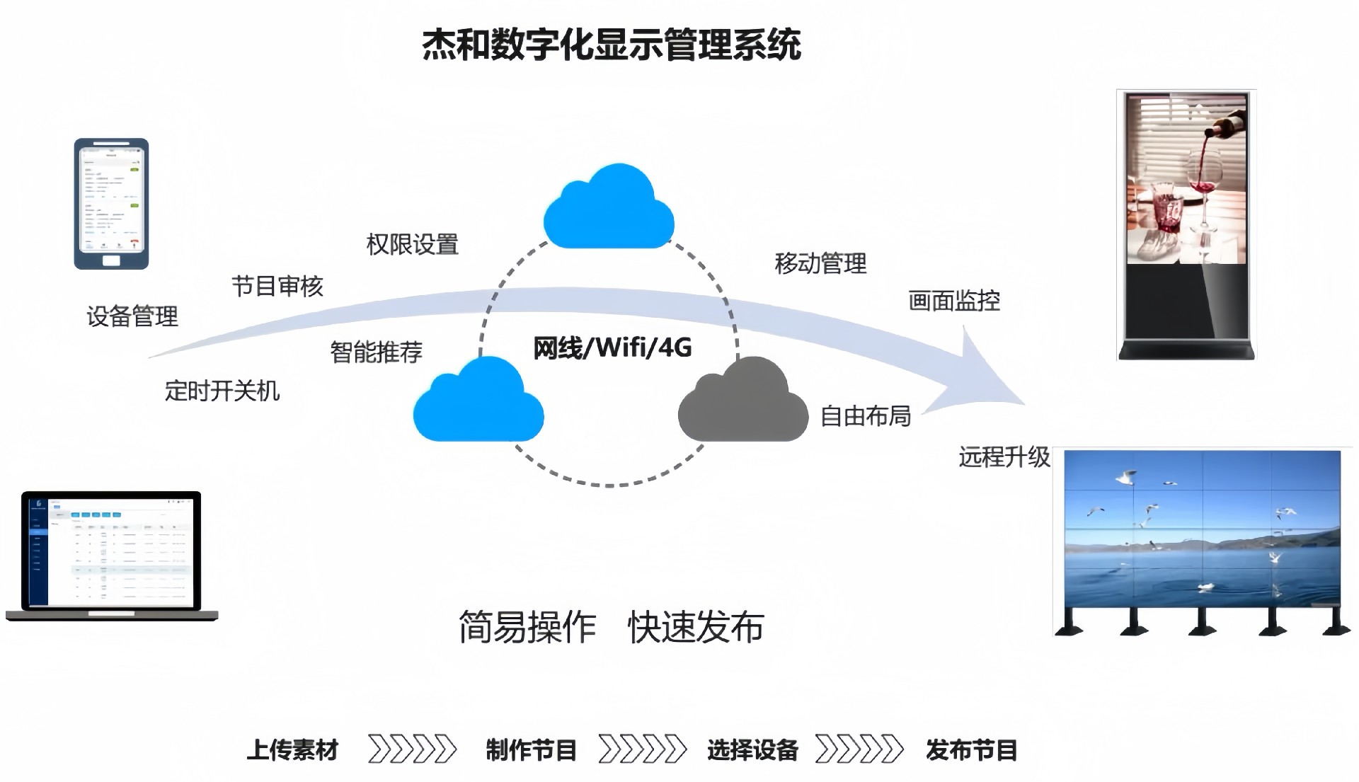 目前非凡科技GDSM-ES系统覆盖市场上多形态网络智能显示终端,满足行业全产品业态需求,如广告机、LED显示屏、LCD拼接屏 、普通液晶电视等各种显示终端,广泛用于广告宣传、通知公告、指示引导。