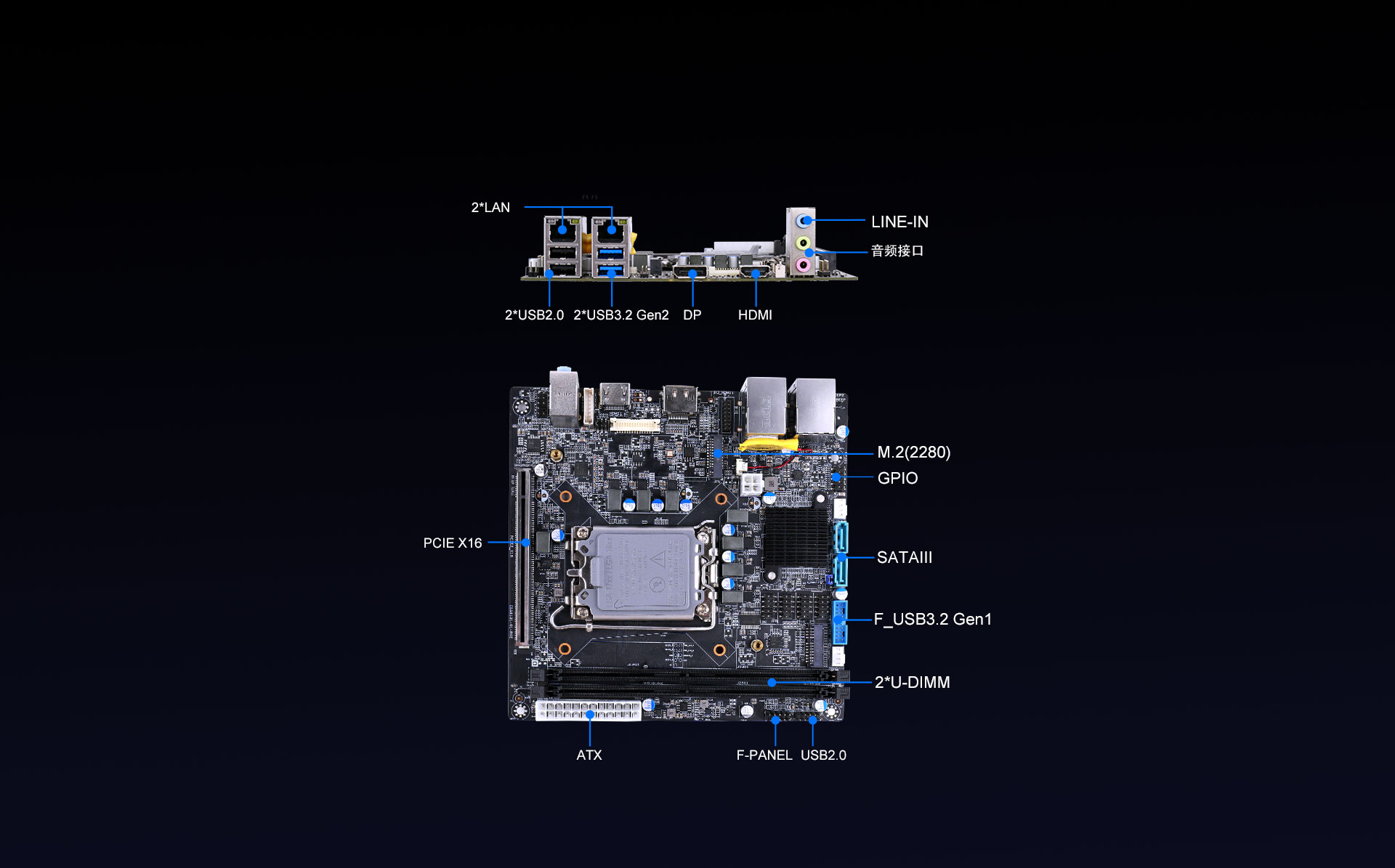 IB5-8131采用LGA1700插槽,采用Intel® B760 芯片组,支持Intel第12代至14代处理器,兼容Alder Lake-S、Raptor Lake-S和Raptor Lake Refresh 处理器,采用6+1相供电,即使在长时间高负载工作时也能维持稳定运行,配备2 x U-DIMM DDR5内存,最大支持96GB,频率最高可达5600MHz,可灵活扩展NVMe SSD和2个SATA3.0存储。
