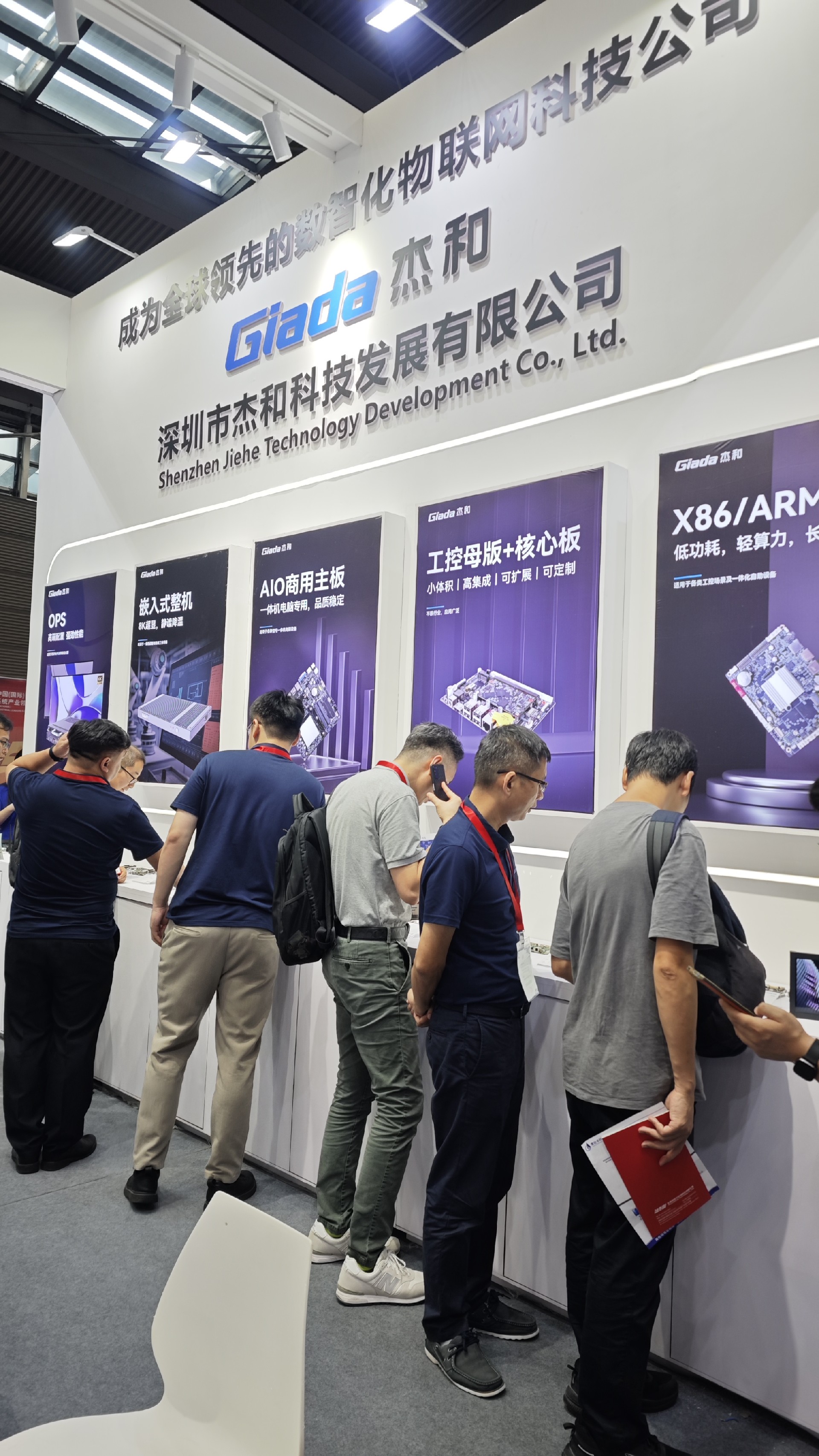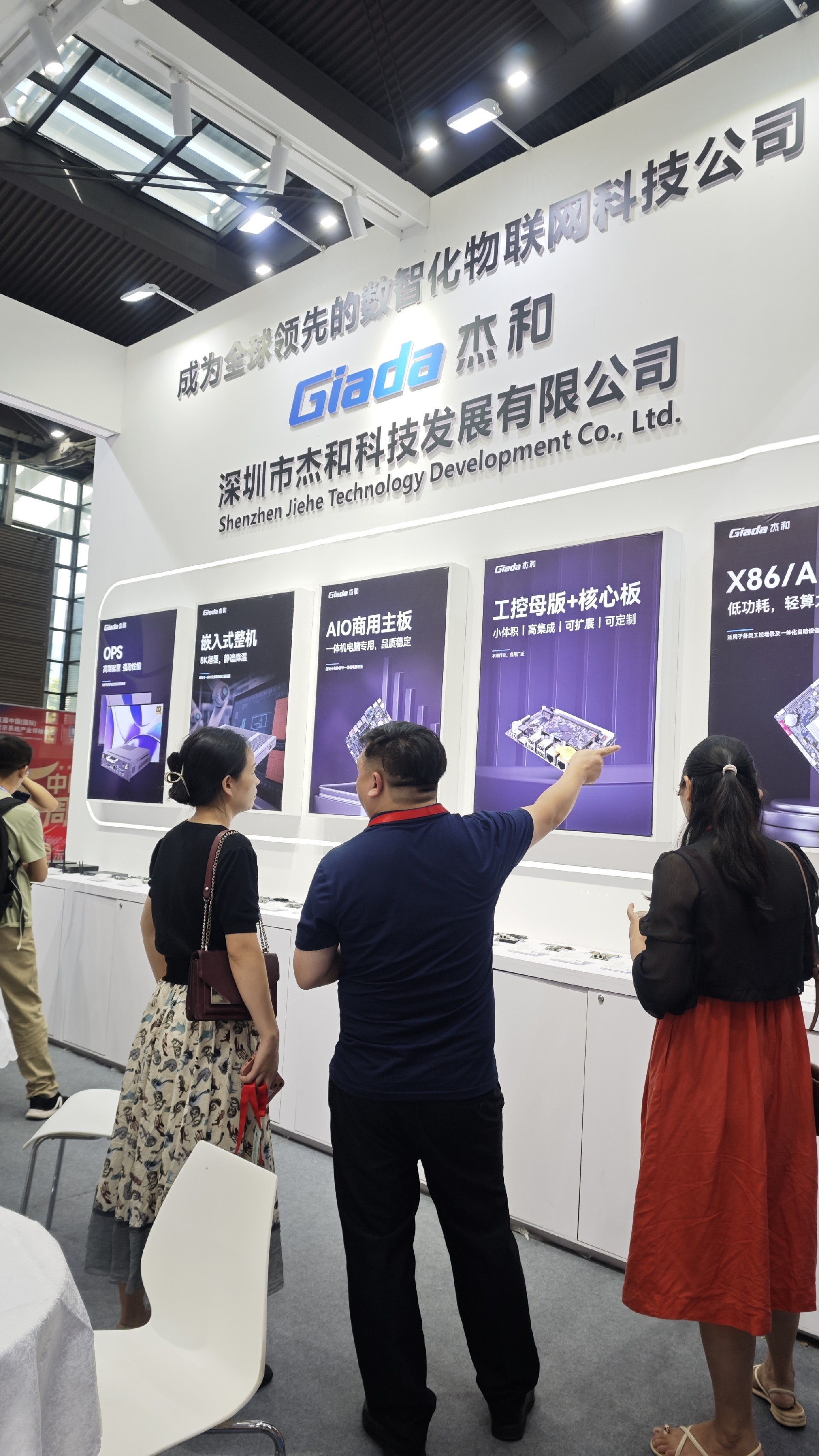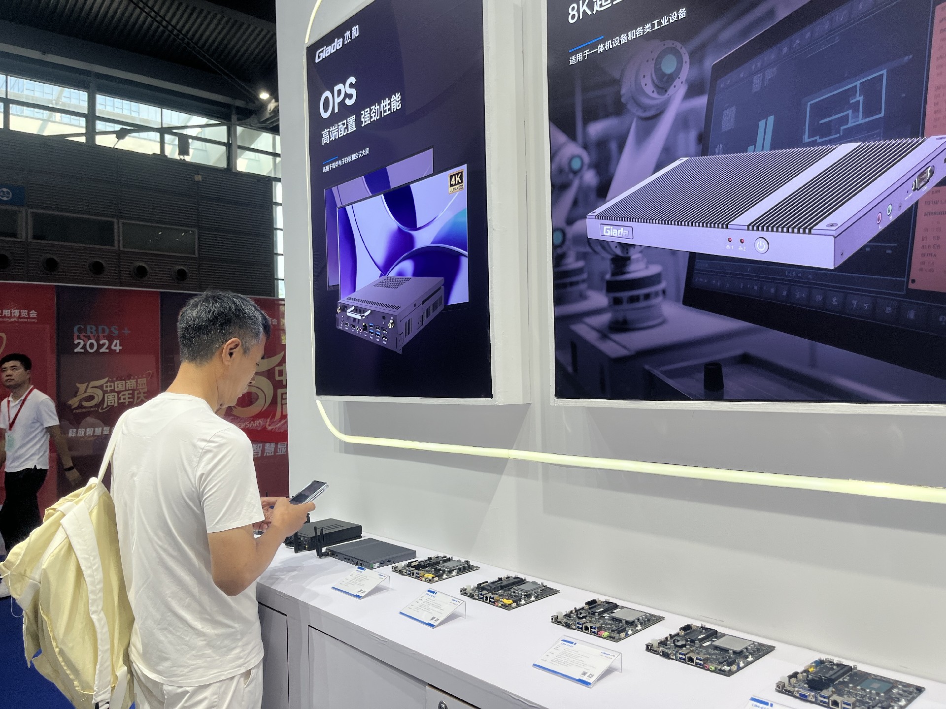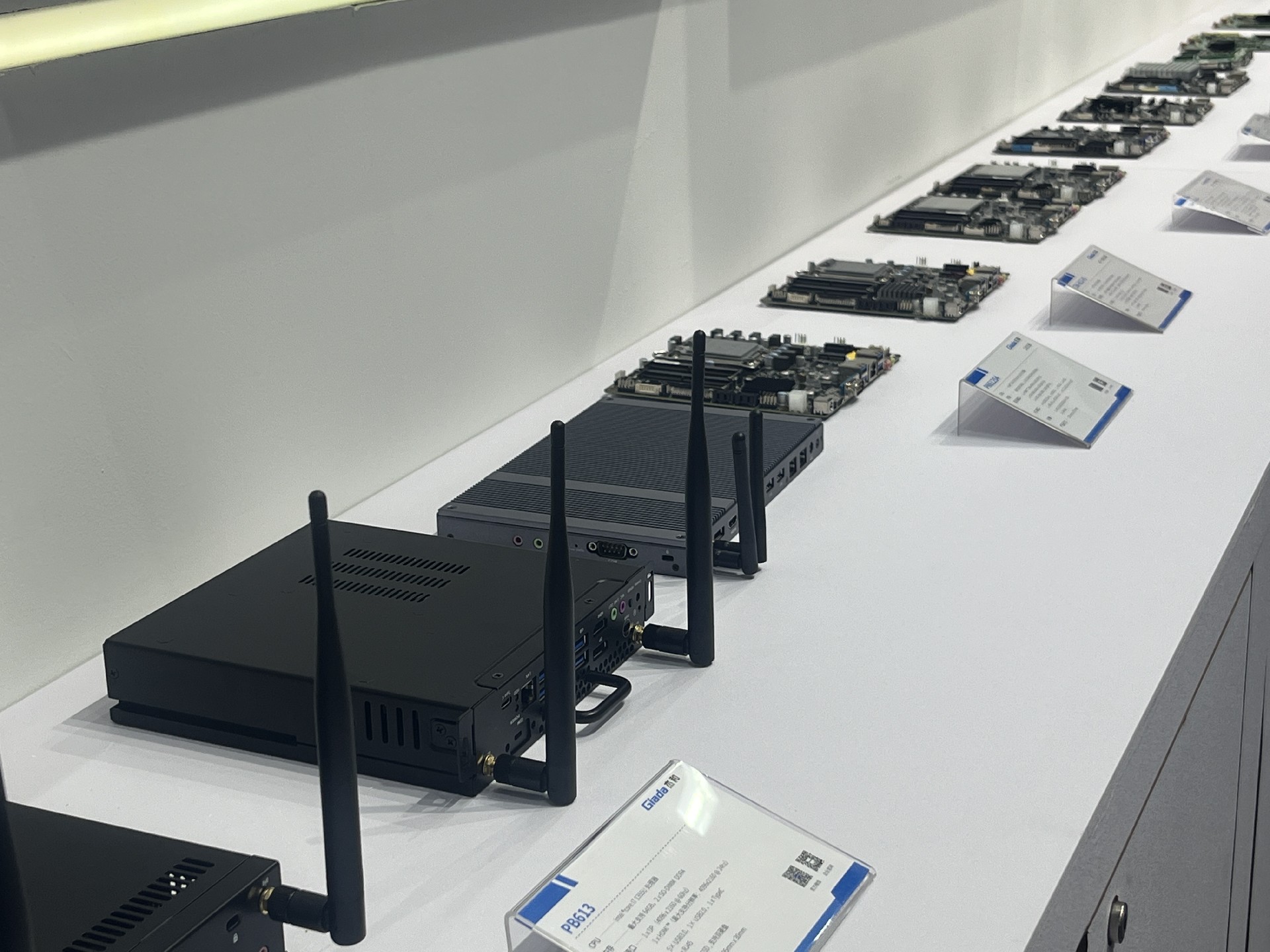 非凡科技展位放置在c位的明星产品和最新产品吸引了众多参观者的目光。展台下方整齐排列着公司的产品,包括主板、嵌入式整机、OPS等,这些产品不仅适用于商业展示领域,还广泛应用于工业、制造业和教育业等多个行业。