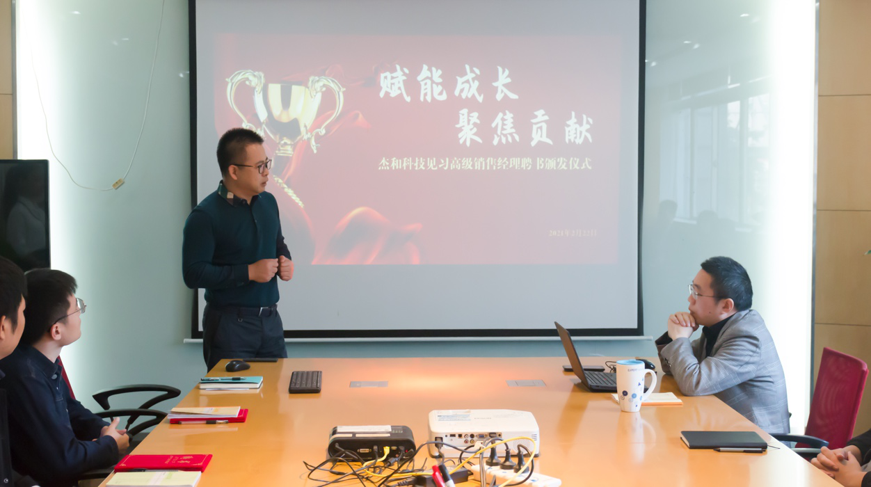 2021年2月22日,非凡科技公司举行了国际销售中心见习高级销售经理聘书颁发仪式。聘书颁发仪式由人力行政部主持,公司总经理林总、国际销售中心所有成员出席了本次活动。