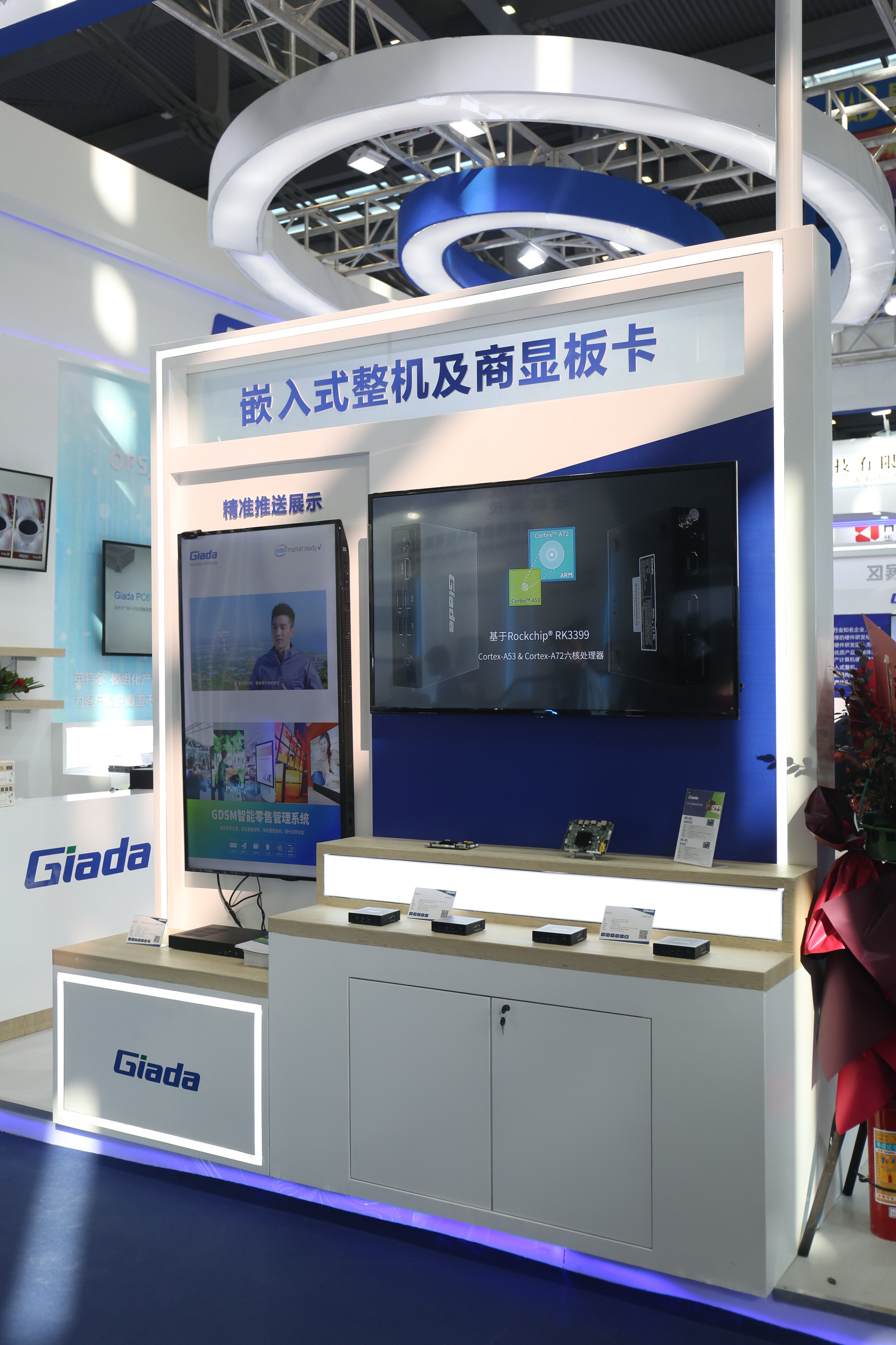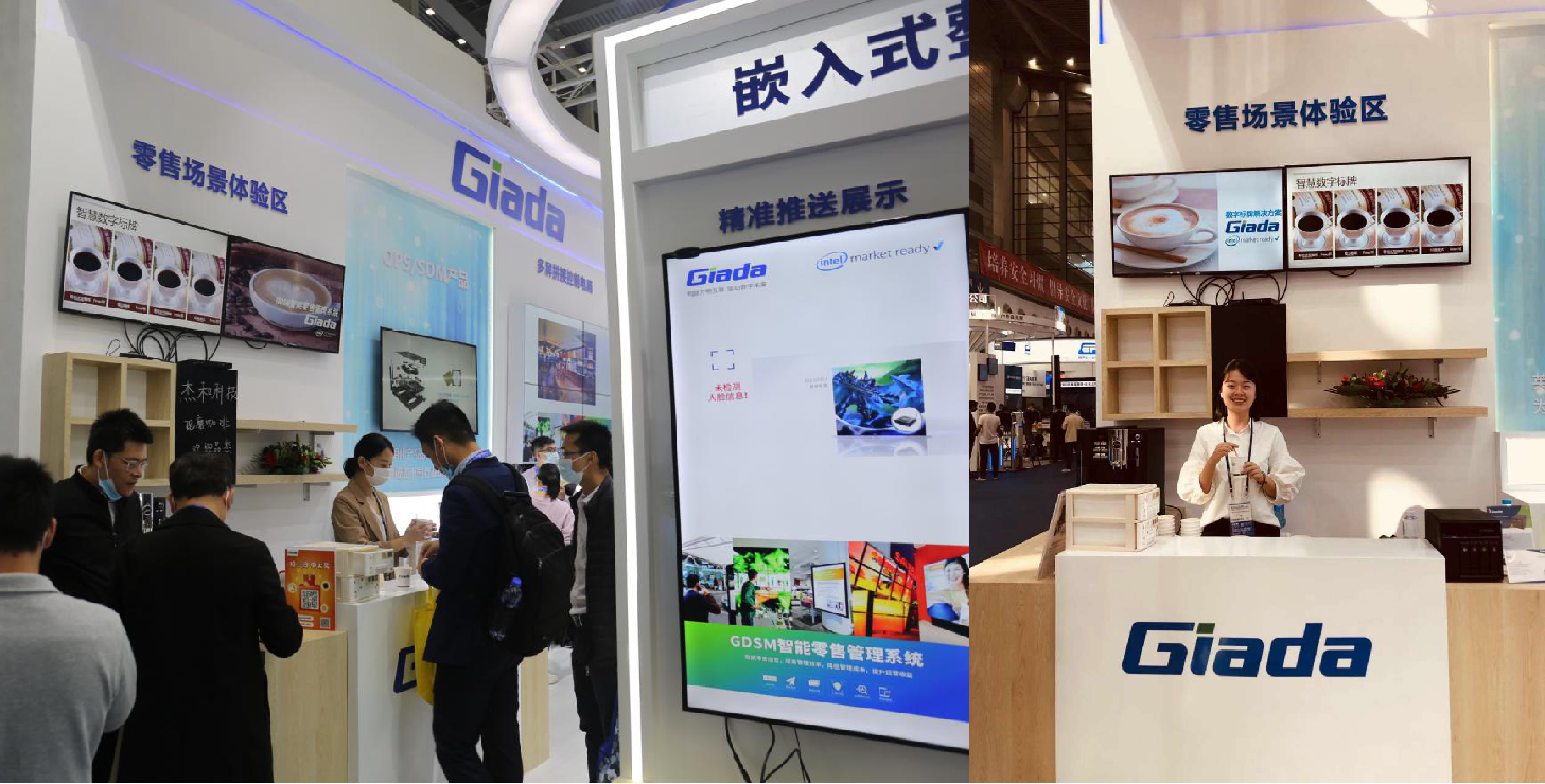 紧邻ARM架构商显产品集的精准推送展示区与零售门店模拟展区,共同组成了本届展会非凡科技展位的一大精彩设计。场景展现了GDSM智能零售管理系统在零售门店场景下的展示效果,顶部的数字标牌由GDSM系统推送内容,模拟搭建了针对人流动线的广告精准推送形态。