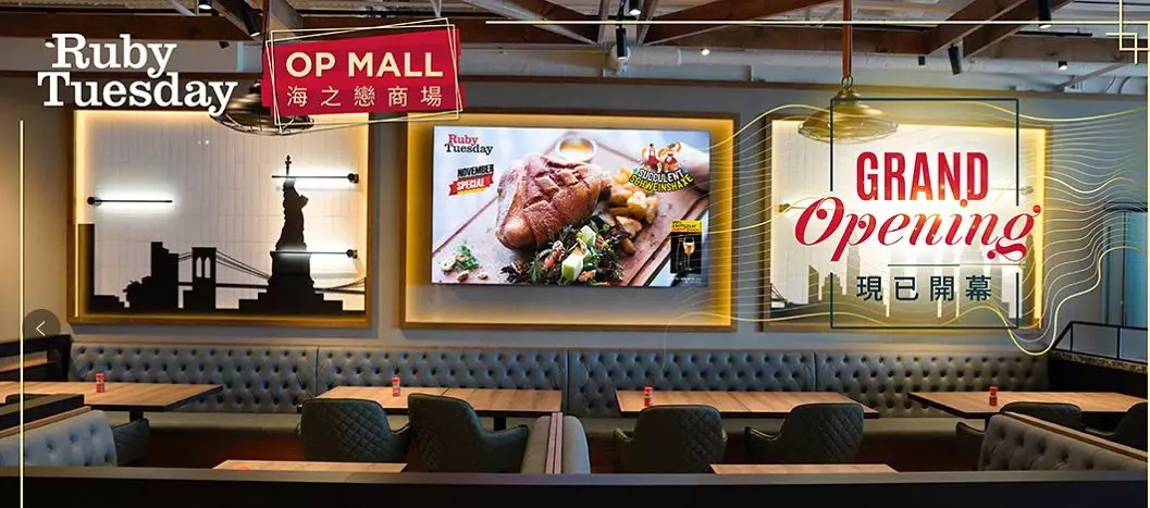 非凡科技是Ruby Tuesday连锁餐厅智慧化项目的方案提供商。非凡承担了整个餐厅的多媒体信息系统架构的设计以及终端媒体播放器的安装和部署,帮助餐厅实现了6屏拼接、4屏拼接及86寸超大屏显示,使餐厅的商业环境和品牌形象得到了极大的提升。