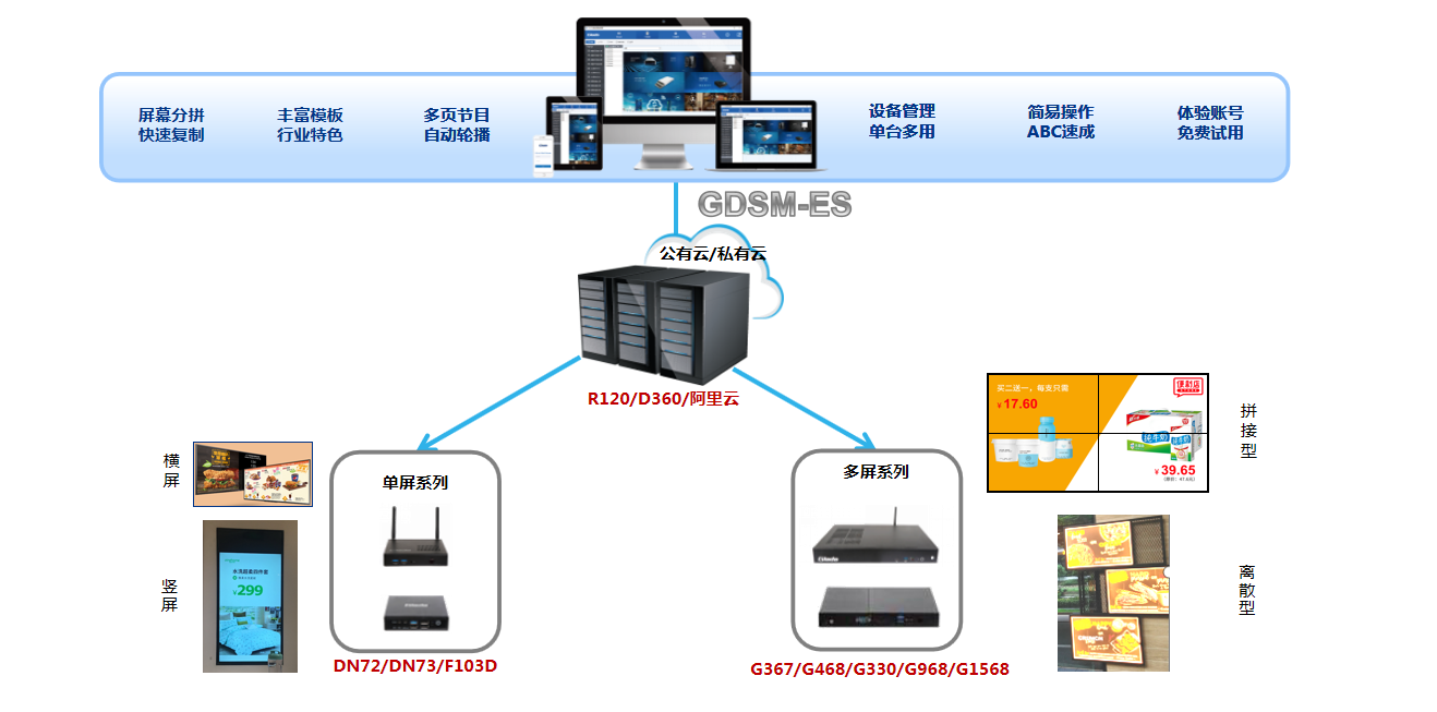 除了提供软件,非凡科技还可提供与该系统适配的媒体播放器,从商用级到工业级,从2k分辨率到4K分辨率,从多屏拼接墙到单屏点餐牌,从外挂播放器到可插拔模块,品类齐全。