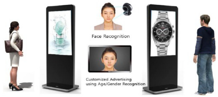 正如一开始提到的,基于GDSM智慧商显系统平台和非凡多屏拼接播放器的精准信息推送方案,整合了人工智能技术,在5G或有线网络的支持下,能够完成针对不同消费者推送不同消费者画像对应的产品。非凡拥有边缘计算能力的G系列多屏拼接播放器,适合作为AI人脸识别的硬件基础平台。通过训练完善的人工智能算法,针对不同的消费者标签,推送不同的广告信息。