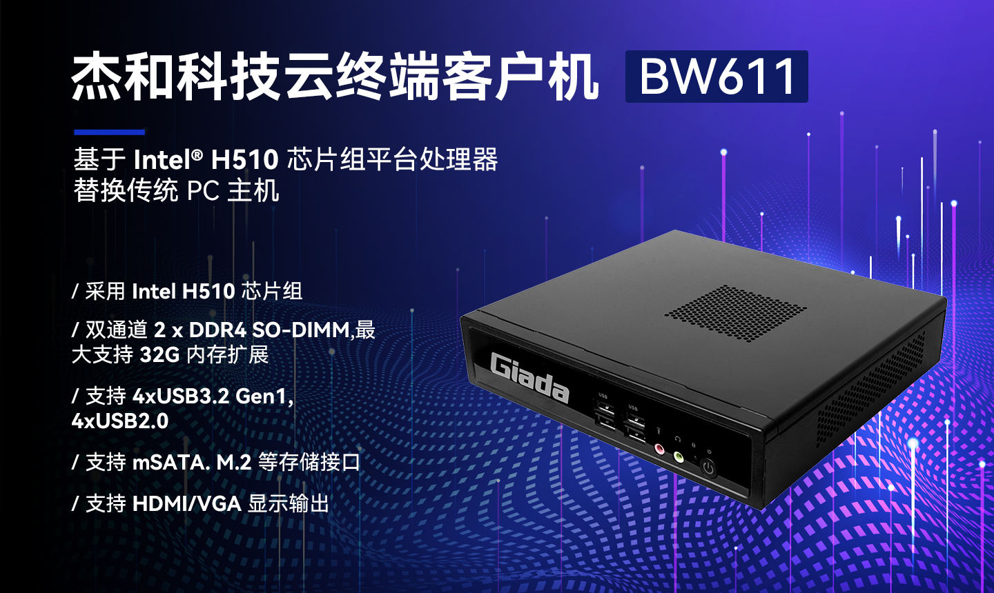 非凡科技云终端BW611体积小巧、双通道内存,性能强悍,接口丰富。