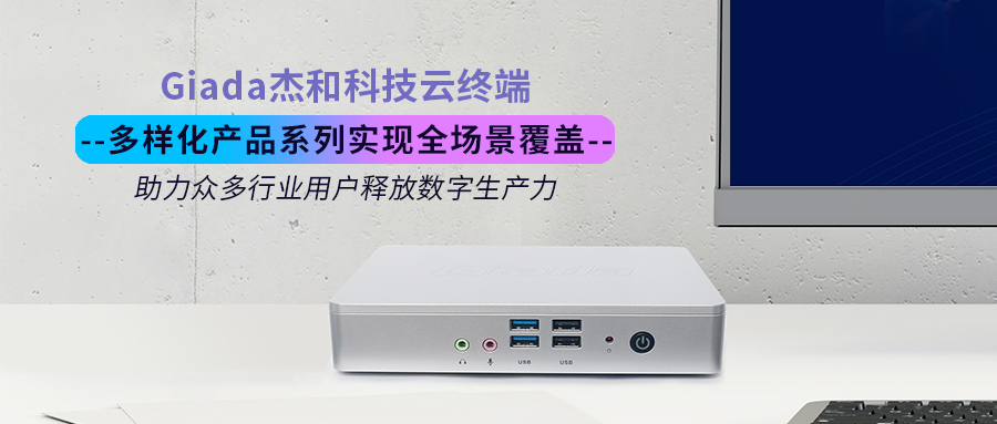 Giada非凡科技云终端VT20采用Bay-trail平台,可选配Intel J1800/J1900/N2807处理器,大小为170mm*120mm*36mm的尺寸,机身小巧,可实现轻量化部署,轻松满足无须追求极致性能体验的应用场景。