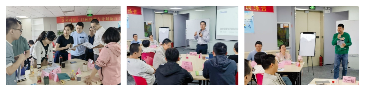 本次培训外聘了专业的组织与人才培养专家进行授课,在培训课程中,非凡的国内与国际营销中心、产品部等,以及杰拓管理层的各个小伙伴分为五个小组,通过小组讨论、上台发言、随堂测验等互动形式,学习并了解到基于战略目标的组织执行力的重要性,目标设定的SMART原则与时间管理的方法,以及执行力提升的四大动力系统,现场学习氛围活跃,求知欲望强烈。
