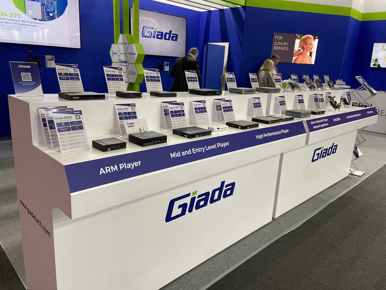 作为2024年的开年首秀,Giada非凡科技携一众极具竞争优势的媒体播放器、AI边缘计算机和网络设备等最新技术产品,以及智能显示、智慧零售、智慧安防等物联网硬件解决方案亮相现场,全方位展示了“物联万物,非凡智造”战略赋能智慧商显领域的创新引力,推动行业加速进入万物互联的新世界。