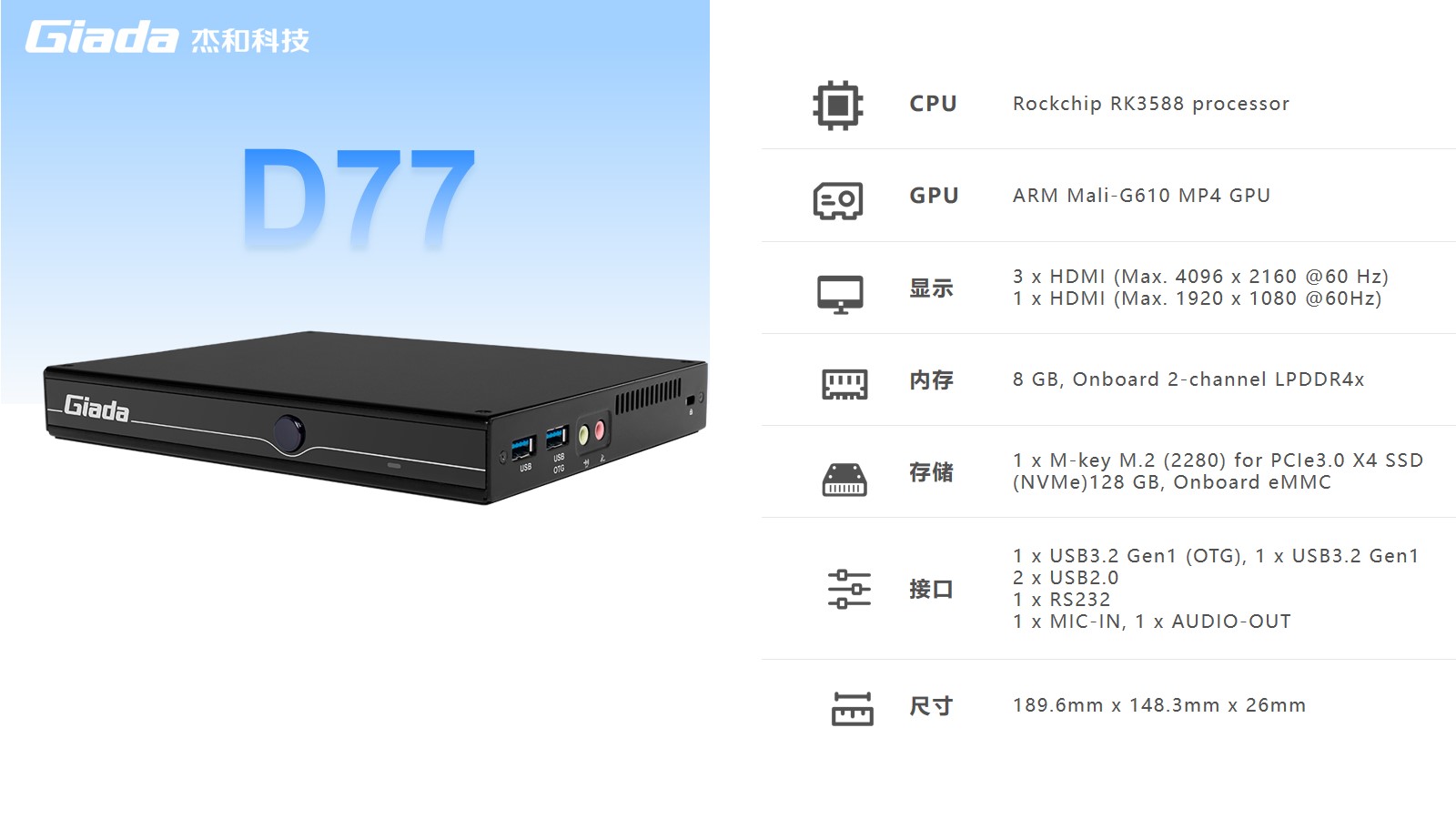 媒体播放器主要应用在大型商场、校园、户外大屏、超市、机场等公共场所,通过大屏幕终端显示设备,发布商业、财经和娱乐信息的多媒体专业视听系统,以其震撼的视觉效果、强烈的画面冲击力和高曝光率等特点,媒体播放器已经成为成为品牌传递信息、展示形象的重要渠道。非凡媒体播放器D77能够输出4个独立且支持4K UHD 分辨率的HDMI 屏幕,搭载八核架构,拥有6TOPS 算力的RK3588处理器,采用的ARM Mali-G610 MP4 GPU让D77 具备极其强大的图形性能。