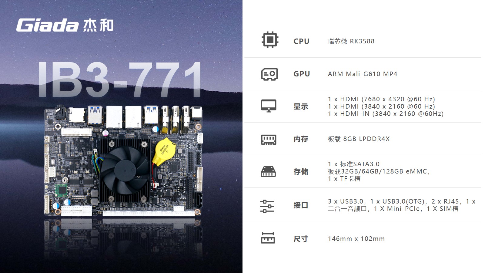 非凡科技嵌入式主板IB3-771是8K人工智能主板,拥有轻算力的它可用于机器人、边缘计算、智能NVR、智能汽车、智慧大屏、AR/VR、ARM PC、智能自助终端等领域,还可用于监控、工业、餐饮、智能交通、文娱产业等对超高清视频需求旺盛的行业;