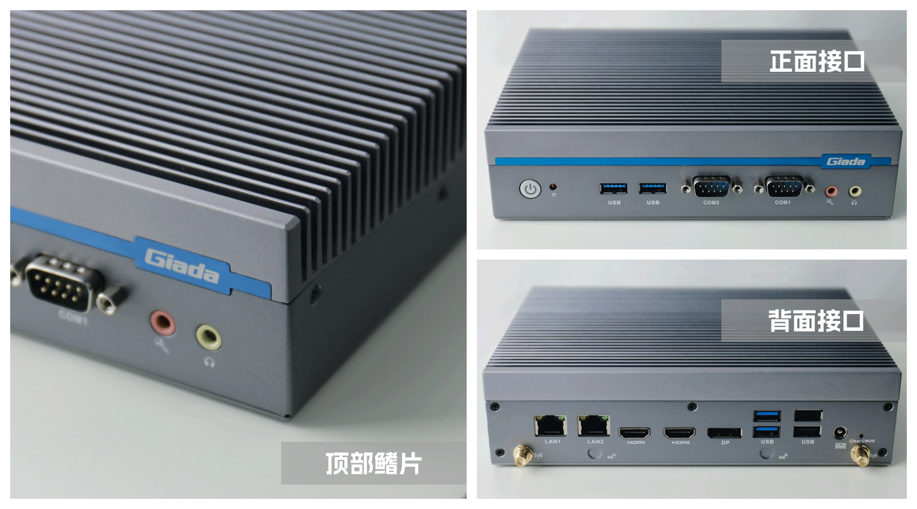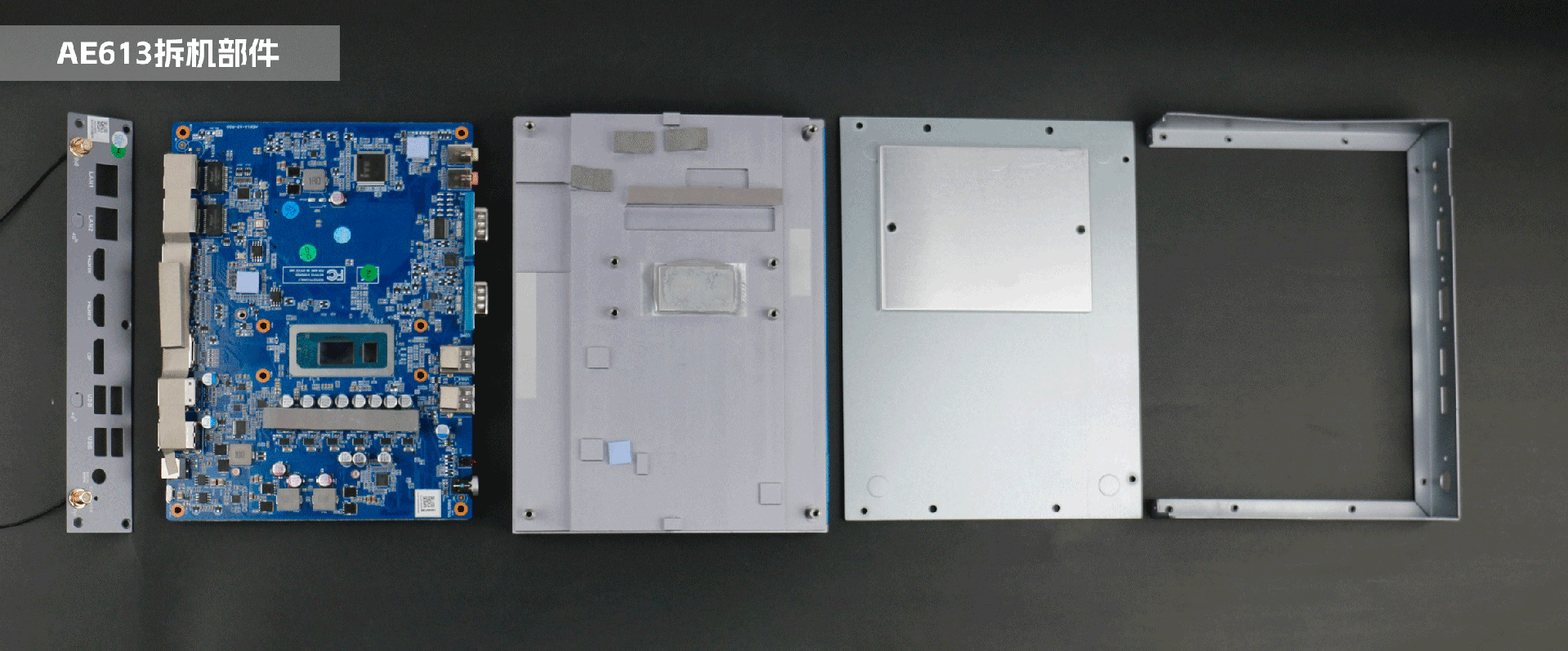嵌入式整机AE613外包装采用环保材料设计,内部配备适配器、AC线、天线棒、螺丝包,满足通用需求,整机外观机壳顶面采用一体式铝板增高的鳍片散热设计,整机结构采用全铝设计保证散热与抗压性,通过非凡特有无风扇静音散热设计使整体散热效果非常优秀,同时营造出极致安静的工作和使用环境,无噪音,更防尘。