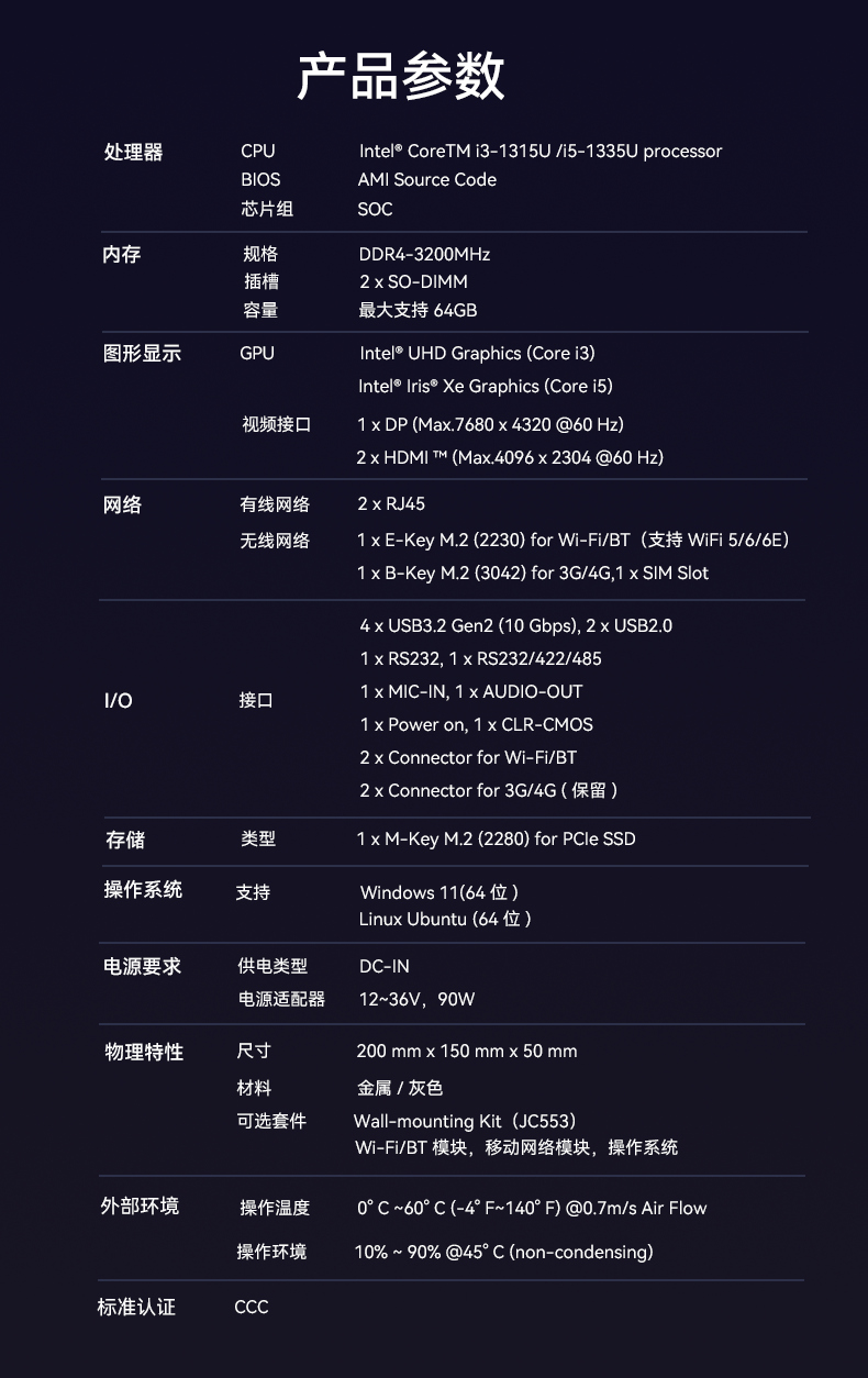 非凡嵌入式整机AE613作为一款支持8K的三显宽温宽压户外整机,可以使用的场景包括但不限于广告机生产商、户外广告、自助终端生产商、户外自助服务、自动化控制(工厂、仓储、物流、自动分拣等)、交通监控监测、政府自助服务等,针对客户个性化需求,支持ODM/OEM/JDM定制化服务。AE613详细的产品性能参数如下: